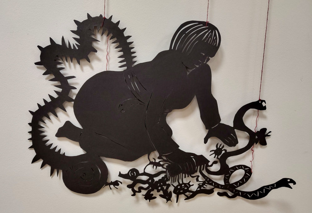 Isiknäitus “Koid purevad elu topilist kudet” keskendus pärimusliku inimkultuuri igapäevasele ja kogemuspõhisele seotusele teiste liikide ja kohaliku loodusega. Üksteisest sõltuva koostoimimise kaudu on inimesed olnud seotud taimede ja loomade, metsade ja vetega. Seda seost väljendavad tänaseni keeles ja pildis kasutusel olevad väljendid ja sümbolid, näiteks taime- ja loomanimelised kirikirjad ja linnulaulude sõnad, samuti keelud-nõuded loodusega suhtlemisel. Mind huvitab kehaline ja argieluline põimitus teiste liikide ja eriti naiste seotus kohaliku loodusega ning selle sümboliline väljendus pärimuskultuuris, kirjades, söögis, ravimistes, regilauludes, elu koes. Loob kunsti kaudu dialoogi esivanemate loodustarkuse, tänapäevase ökoloogia ja keskkonnahumanitaaria vahel ja uurin, kuidas õppid teistelt elusolenditelt. Mida rohkem mitmekesist elu, seda rohkem seoseid, elujõudu ja armastust.